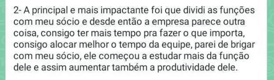 “Consigo ter mais tempo pra fazer o que importa, parei de brigar com meu sócio”